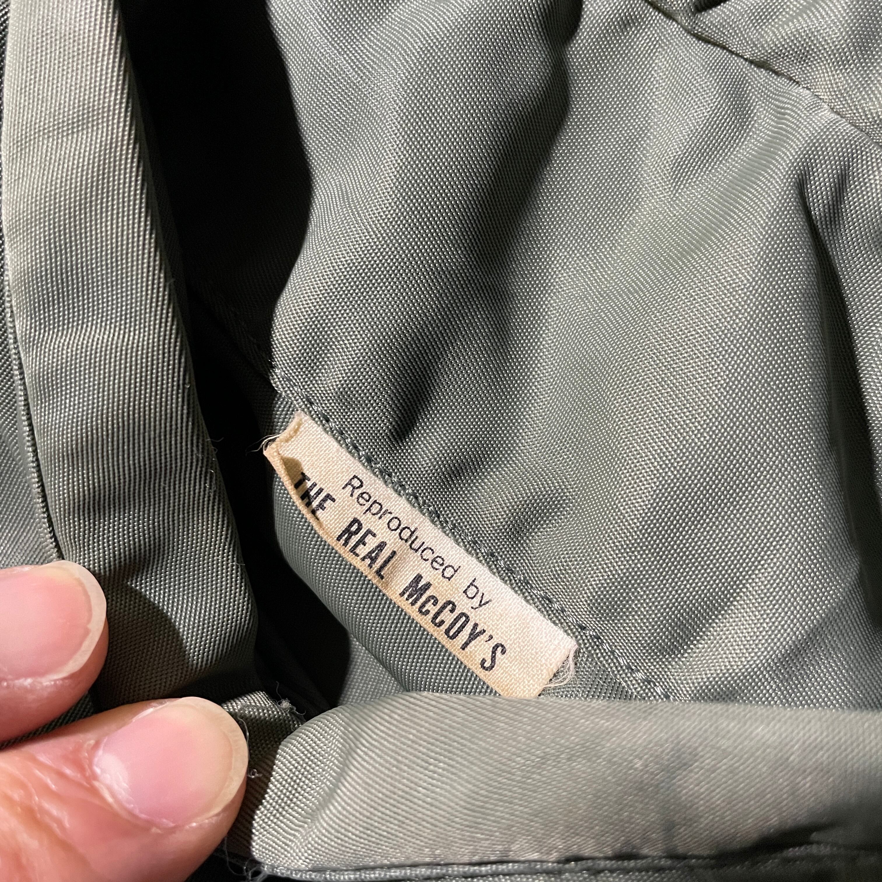 こちらは61sまで採用されていたL-2BをREAL McCOY’Sが復刻したモデル。ポケットのタグがなかったら本物と見分けつきません。ライニングのウール×レーヨンの質感すごいです。ヴィンテージ古着好きにも納得いただける1着になってます。
