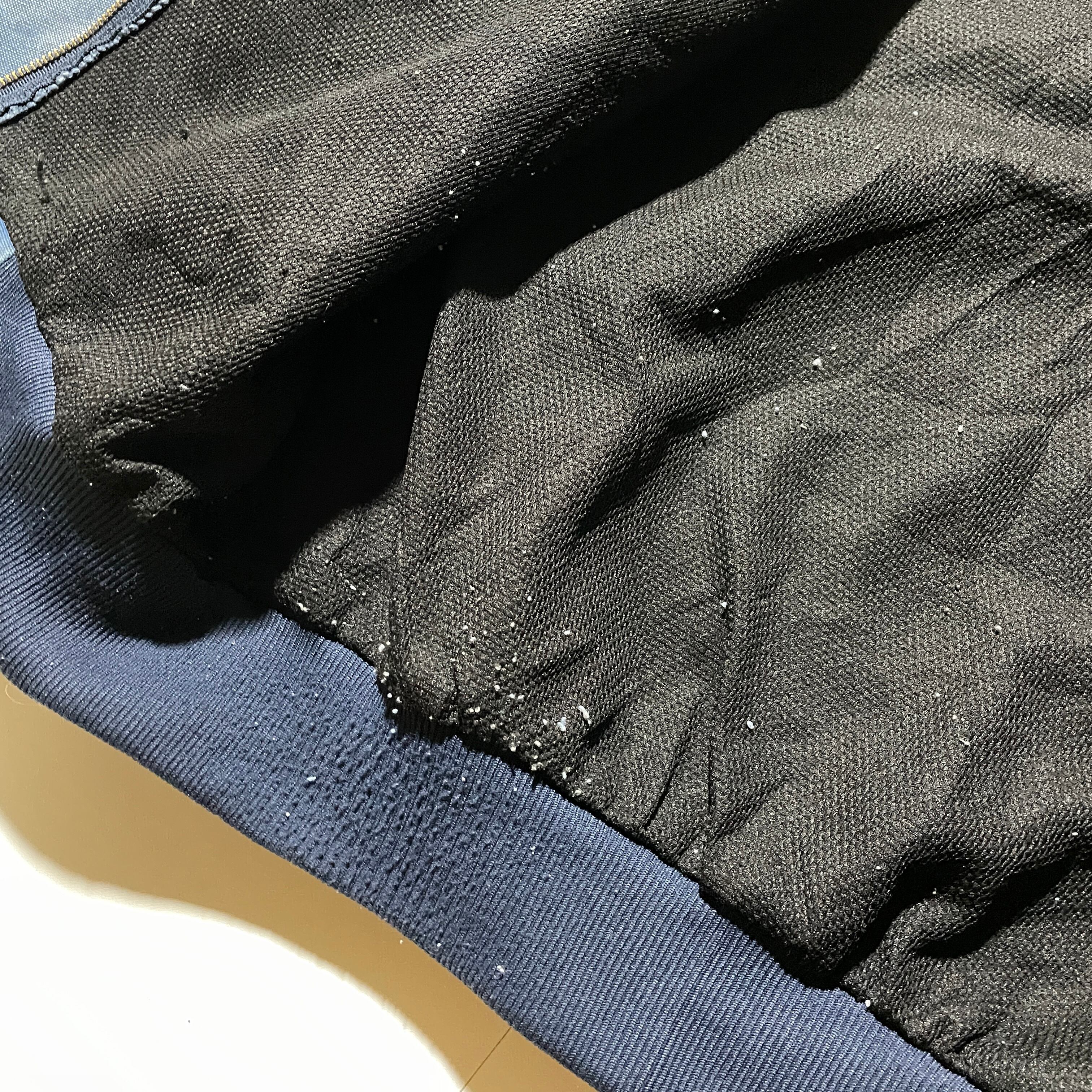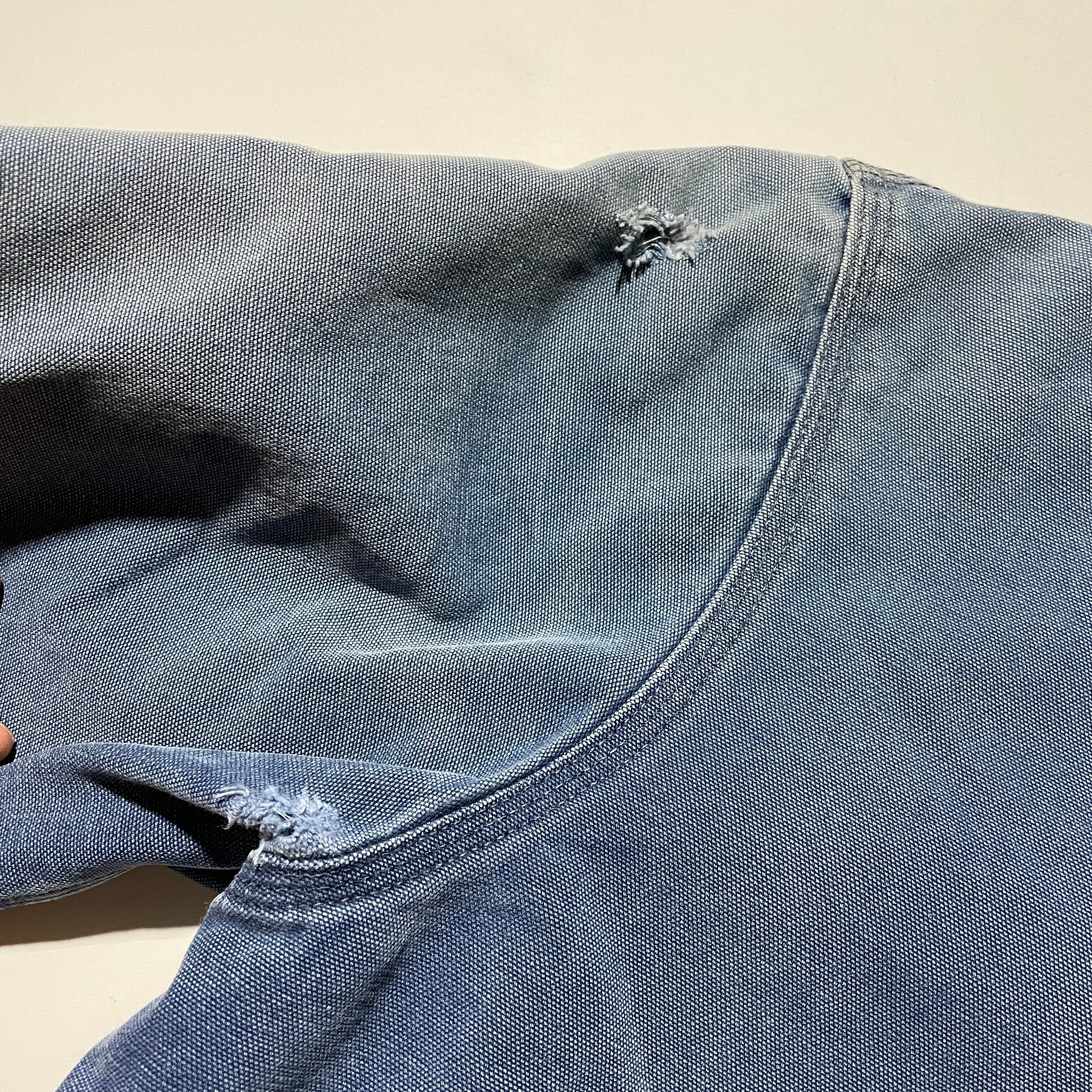ブルーがフェイドしていい雰囲気です。サイズはメンズL相当。分厚めのスウェットも中に着込めるゆったり感です。