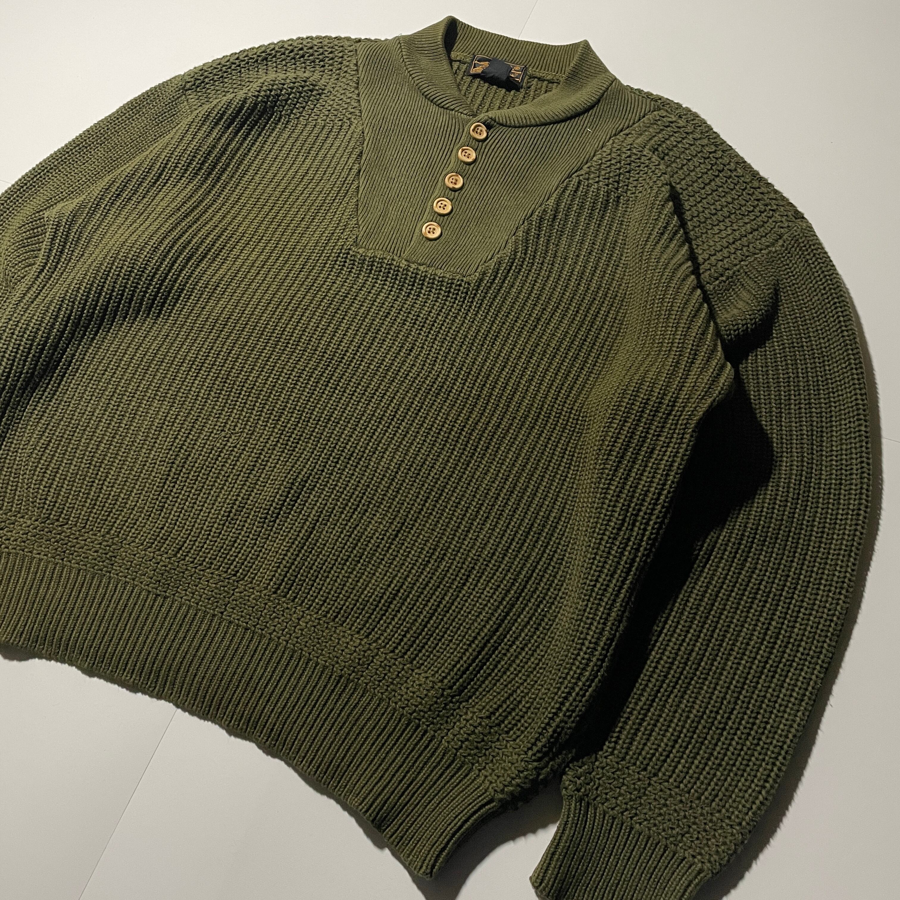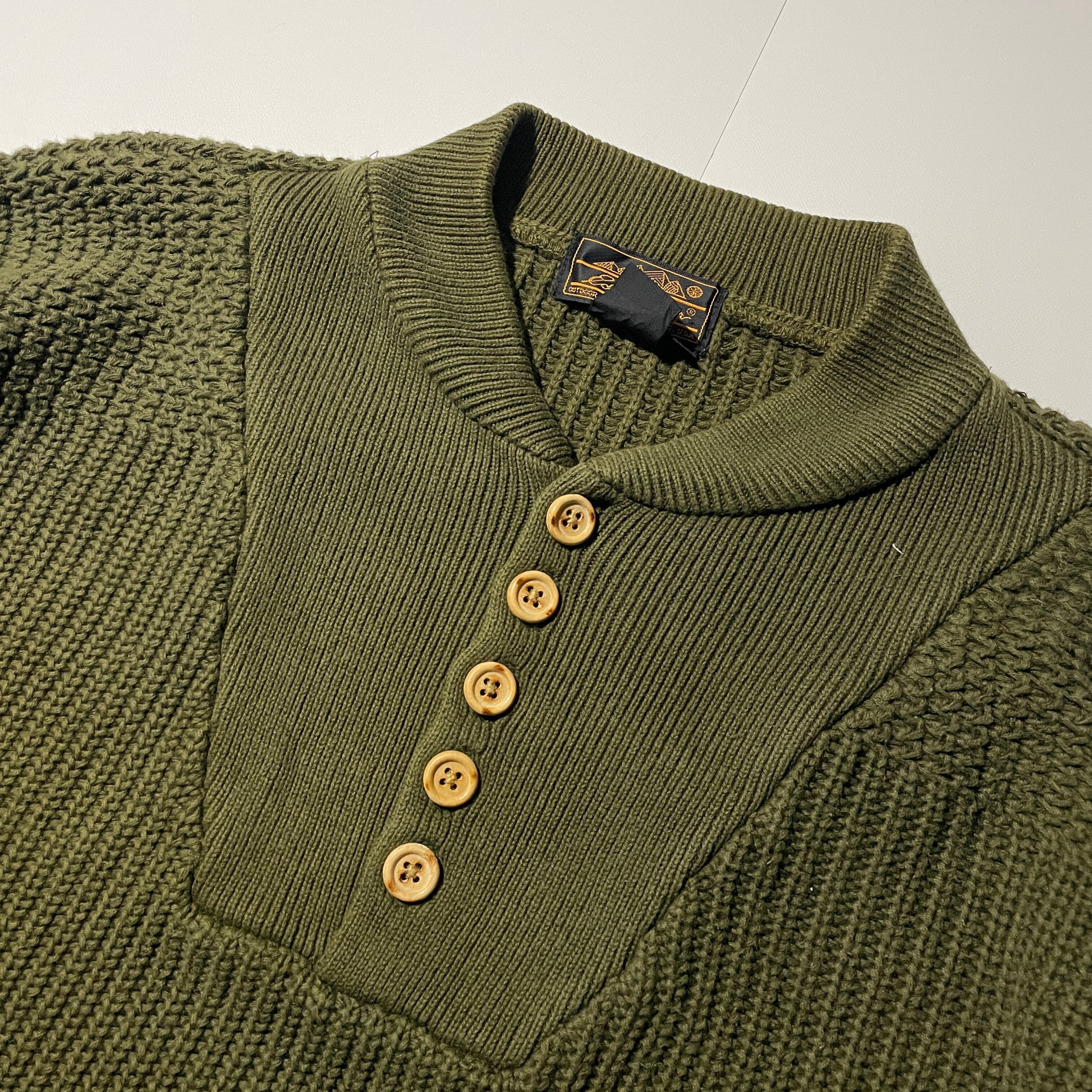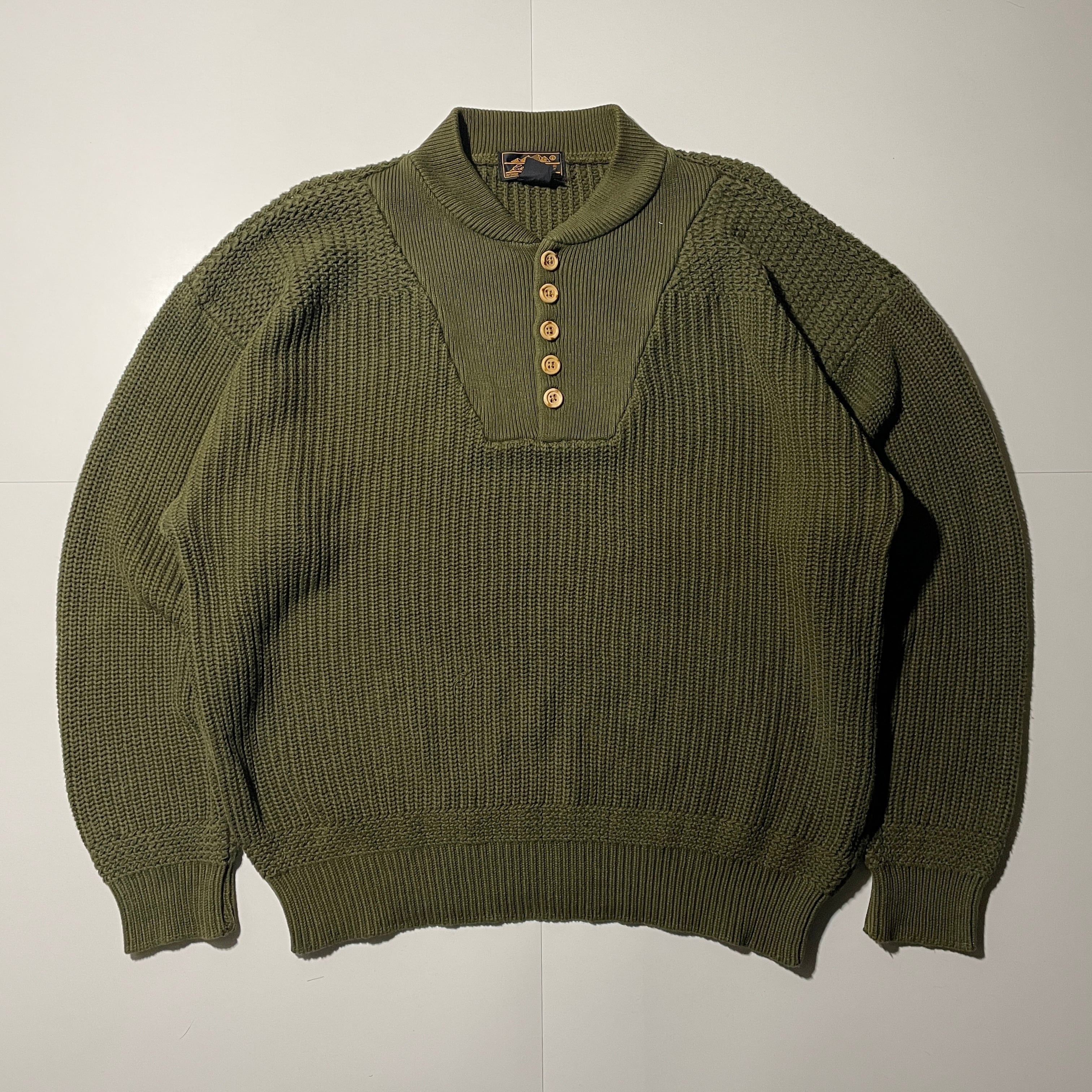 80s-90s Eddie Bauer ヘンリーネック コットンセーター 黒タグ