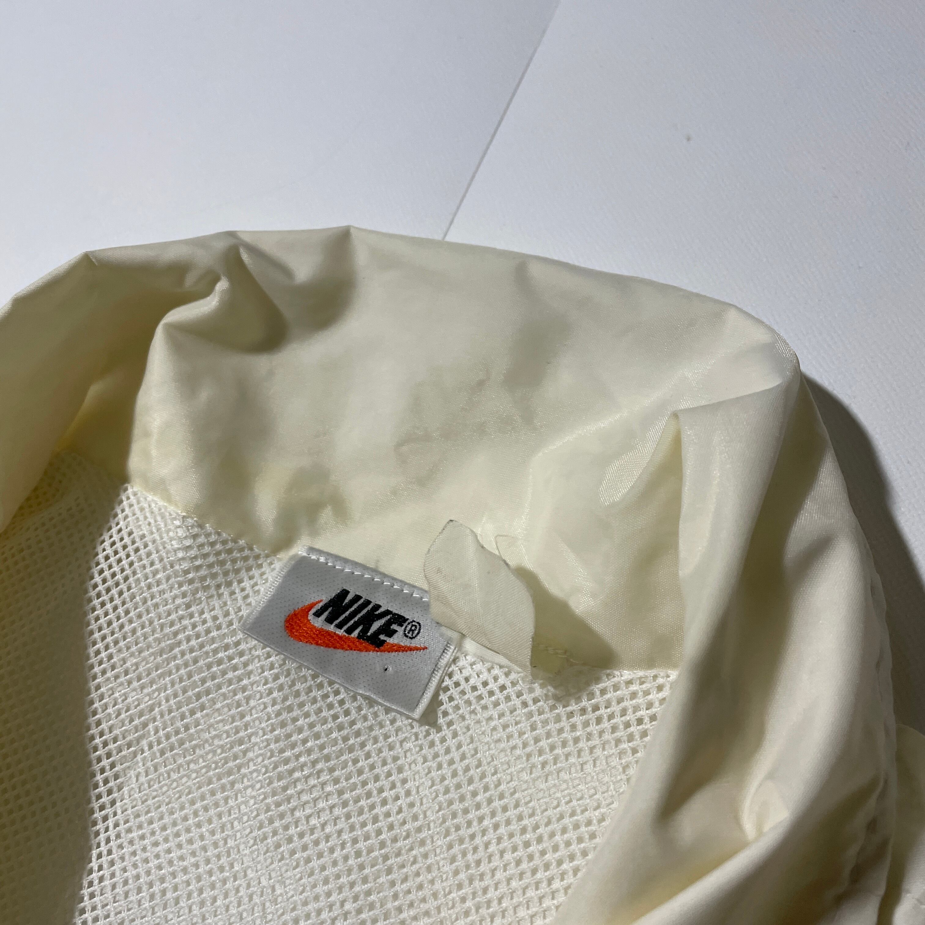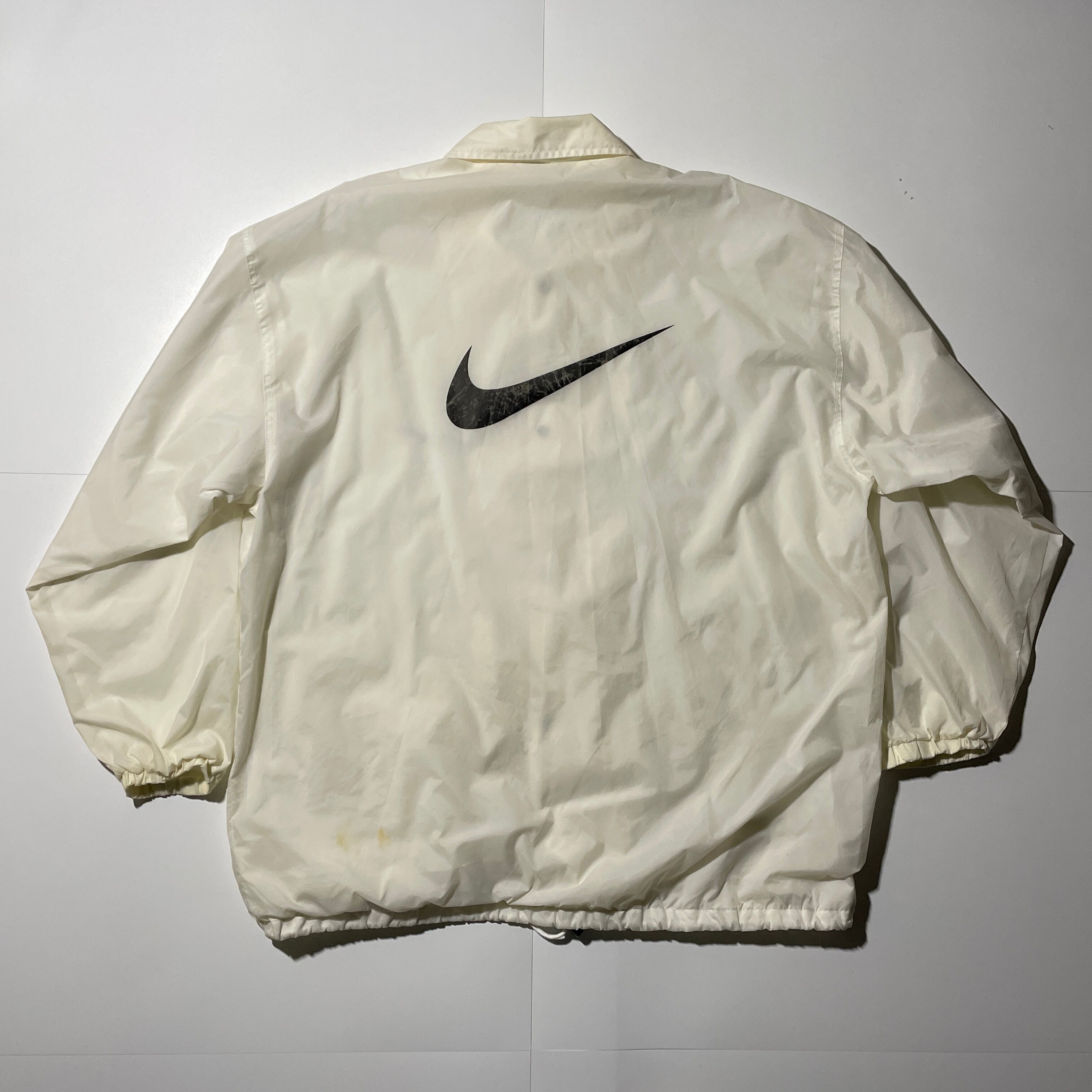 90s頃のOLD NIKE。ソリッドホワイトのナイロンコーチジャケット。フロントのスウォッシュは刺繍、バックはプリントになってます。